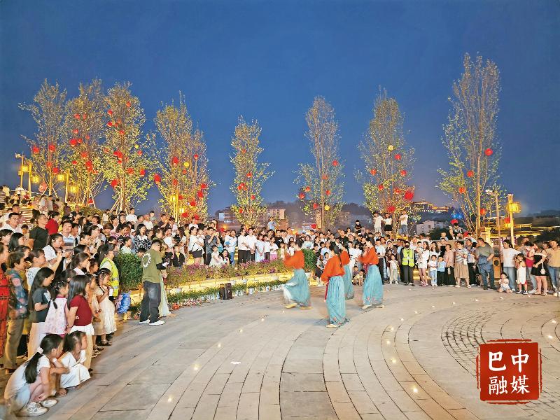 同樣引人注目的還有通江高明湖畔的“通江花月夜”文旅項(xiàng)目。非遺雜技驚險(xiǎn)刺激,漢唐舞蹈婀娜多姿,川劇變臉?biāo)查g引爆全場,還有琳瑯滿目的特色市集,展銷通江銀耳等優(yōu)質(zhì)農(nóng)副產(chǎn)品……