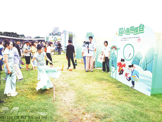 市民在“游園會(huì)”現(xiàn)場(chǎng)體驗(yàn)蹴鞠
