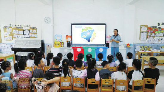 垃圾分類小課堂,孩子們聚精會神聽講。