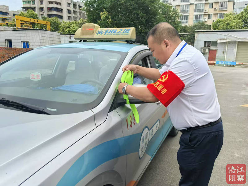 3日下午,記者在城區(qū)多家出租公司看到,趁著空載的間隙,陸續(xù)有出租車回到公司,在工作人員的幫助下為車輛張貼愛心貼紙、懸掛綠絲帶。