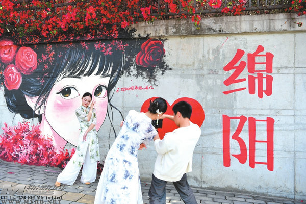 綿陽(yáng)三里橋附近墻壁人物畫作栩栩如生,市民打卡留念。視覺(jué)綿陽(yáng)資料圖片