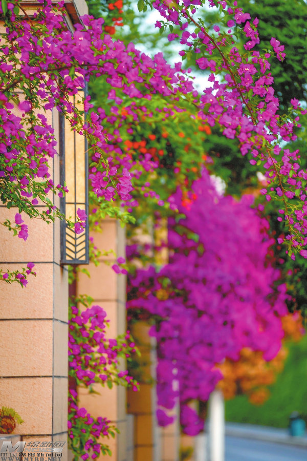 綿陽(yáng)芙蓉路三角梅花開成瀑視覺(jué)綿陽(yáng)資料圖片