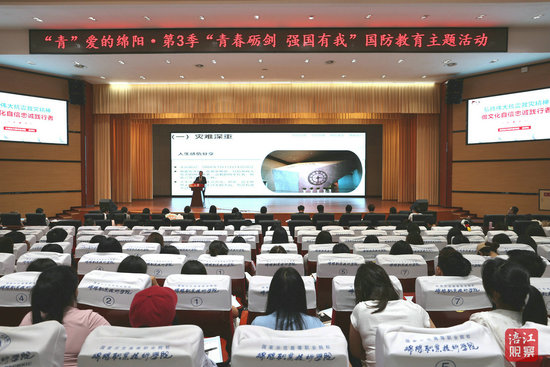 綿陽新聞網(wǎng)訊 6月11日上午,綿陽職業(yè)技術(shù)學(xué)院學(xué)術(shù)報(bào)告廳內(nèi)掌聲雷動(dòng),“青”愛的綿陽第三季——“青春礪劍 強(qiáng)國(guó)有我”國(guó)防教育主題活動(dòng)第七場(chǎng)在此舉行,抗震救災(zāi)精神宣講團(tuán)成員孟祥柱為500余名學(xué)子講述“5·12”汶川特大地震中的救援故事,傳遞萬眾一心、眾志成城,不畏艱險(xiǎn)、百折不撓,以人為本、尊重科學(xué)的偉大抗震救災(zāi)精神。