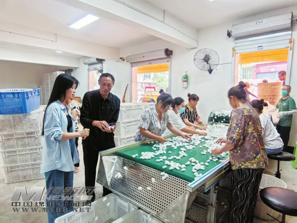 采訪中,金峰蠶繭站站長劉漢平告訴記者,這是金峰蠶繭站今年第一批蠶收繭的第四天,已經(jīng)收到4.2萬公斤蠶繭,預計可收4.4萬公斤。“我們進行初選分級稱重,烘干后,再進行一次篩選,保證上車率(繅正品絲的蠶繭比例)達到95%以上,再送到絲廠進行下一步加工。”劉漢平說。