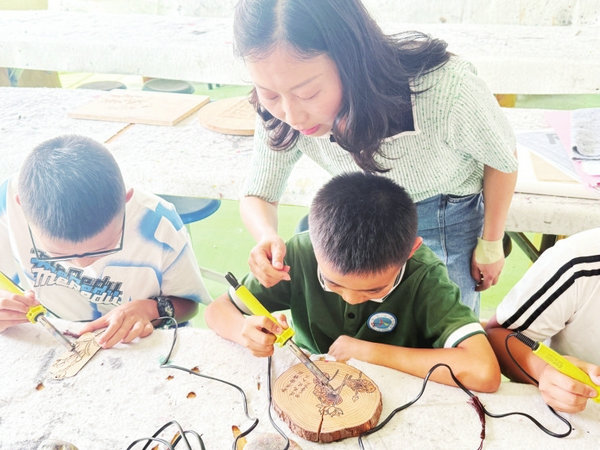 “滋滋”的烙燙聲中,青煙裊裊升起,6月9日,在游仙區(qū)徐家小學的“竹文化”烙鐵畫課堂上,孩子們手持電烙筆,沿著竹片上鉛筆繪制的底稿,小心烙印,不一會兒,孩子們喜歡的各種圖案便躍然“竹”上。四年級一班學生安韋杭捧著剛完成的竹制書簽興奮地說:“原來竹子還能變成這么有趣的工藝品,現(xiàn)在我總盼著上烙鐵畫課!”