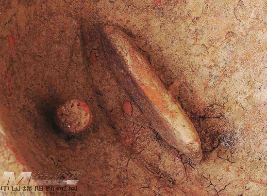 出土文物陶水塘有蓮藕裝飾 記者 張登軍 攝