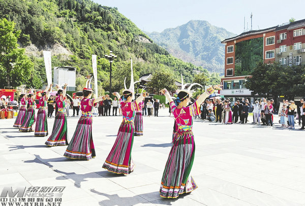 在文化集市里,平武本土?xí)?huà)、文創(chuàng)產(chǎn)品及非遺手作等特色產(chǎn)品琳瑯滿目,“報(bào)恩情韻”民俗文化表演中,白馬歌舞、羌族歌舞等極具特色的民俗節(jié)目讓游客流連忘返。夜幕降臨,西城門(mén)廣場(chǎng)的鍋莊舞更是將歡樂(lè)的氛圍推向高潮,游客與本地市民手拉手共舞,在歡快節(jié)奏中感受民族文化魅力。這種“文物保護(hù)+文化體驗(yàn)+消費(fèi)場(chǎng)景”的融合發(fā)展模式,正是平武推進(jìn)文化遺產(chǎn)保護(hù)和文博旅游發(fā)展的生動(dòng)實(shí)踐。