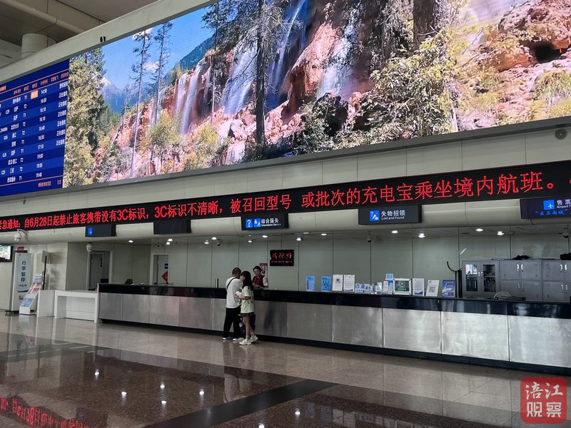 6月27日,記者在綿陽南郊機場實地探訪發(fā)現(xiàn),機場已開始宣傳最新安檢政策:6月28日起,明確禁止旅客攜帶沒有3C標識、3C標識不清晰、被召回型號或批次的充電寶登機。