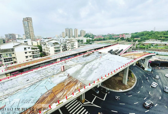 橋下交通已恢復(fù),新的三匯立交橋主體已完工,預(yù)計(jì)8月底完成橋面鋪裝,屆時(shí)兩條匝道將達(dá)到通車條件