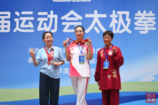 獲得四十二式太極劍集體項目冠軍的北川代表隊成員走下領(lǐng)獎臺,個個笑顏如花。“我們這一次奪冠,大家都非常激動和自豪,辛苦的付出獲得了收獲。”北川代表隊教練王春蓉告訴記者,團(tuán)隊共9個成員,平均年齡在60多歲,最大的68歲,最小的58歲,從三個月前就開始備戰(zhàn)。