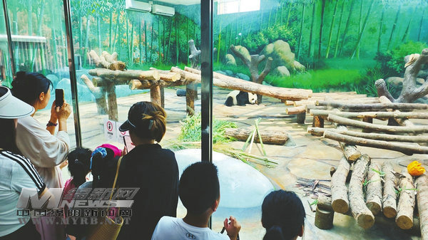 游客在北川大熊貓動(dòng)植物園參觀拍照