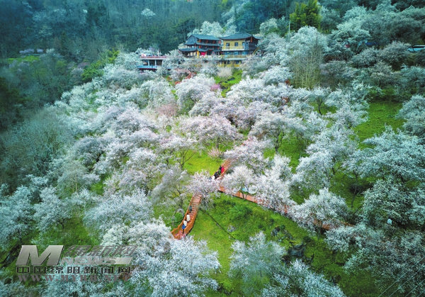 據(jù)史料記載,從明代開始,這里的“梅文化”便已生根發(fā)芽,延續(xù)了600余年。景區(qū)內,百年以上的古梅多達上千畝,100余萬株不同品種的果梅爭奇斗艷。每年2月初至3月底,是印象梅林最美的時節(jié)。萬畝梅花競相綻放,漫山遍野一片雪白,微風拂過,花瓣如雪花般飄落,形成“萬畝梅園,十里花海”的壯觀景致,也難怪它會被譽為“綿陽十大賞花地”之一。