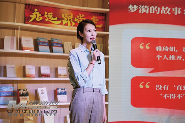 梓潼縣融媒體中心記者孫悅帶來(lái)了《拾光者:在星河褶皺中打撈微光》的故事,用親身采訪經(jīng)歷傳遞“兩彈一星”精神。她說(shuō):“作為記者,我們要先看見(jiàn)、感受、追尋,再去發(fā)聲,我也堅(jiān)信,追尋光的人終將會(huì)成為光的一部分。”