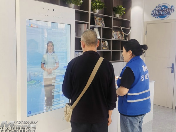 在網(wǎng)格治理中心,市民與AI智能人對話。