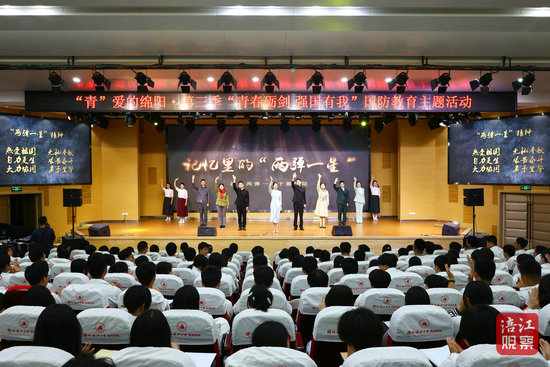 舞臺上,情景劇《記憶里的“兩彈一星”》重現(xiàn)了朱光亞、錢學(xué)森等科學(xué)家突破重重阻礙歸國的歷史瞬間;觀眾席上,學(xué)生們自發(fā)舉起“以我青春礪劍”的標(biāo)語,讓國防教育的意義變得具體可感。