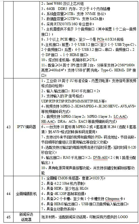 為提高我單位融媒體生產(chǎn)能力,滿足日常融媒體生產(chǎn)需要,現(xiàn)需采購一批融媒體設備,用于日常生產(chǎn)使用。