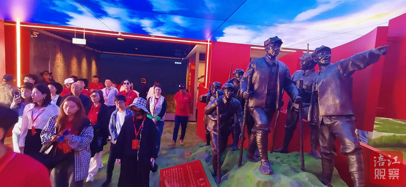 隨后,大家來到紅原縣紅色文化傳承大廳,通過雕塑、影視講解展示等多種形式,全方位、多角度地了解紅軍爬雪山、過草地的悲壯場景。