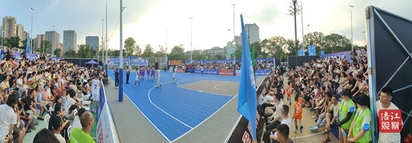 夏日的炎熱阻擋不了群眾的熱情。18時(shí),距比賽還有1個(gè)半小時(shí),觀眾們陸續(xù)排隊(duì)進(jìn)場,敲打充氣棍、揮舞旗幟,將賽前緊張氛圍“拉滿”。19時(shí)30分,隨著裁判的哨子聲響,籃球場上的戰(zhàn)火一觸即燃,“經(jīng)”彩無限隊(duì)率先進(jìn)入狀態(tài),打出6比0的開局。隨后,“經(jīng)”彩無限隊(duì)?wèi){借籃板優(yōu)勢繼續(xù)擴(kuò)大比分,以33比11領(lǐng)先進(jìn)入第二節(jié)。