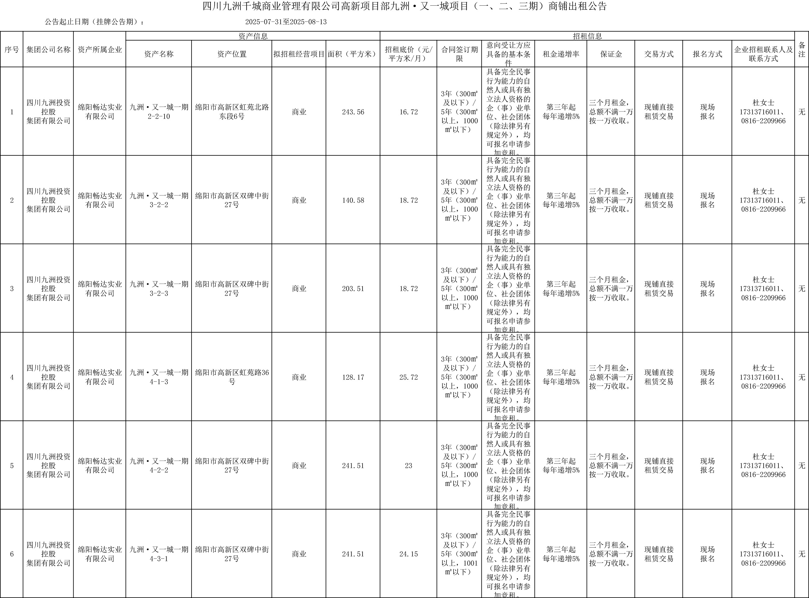 四川九洲千城商業(yè)管理有限公司高新項(xiàng)目部九洲·又一城項(xiàng)目(一、二、三期)商鋪出租公告