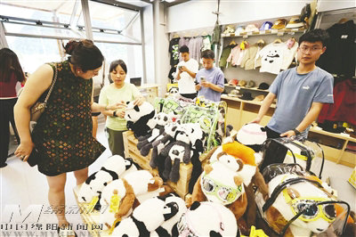 觀賞木座服務(wù)區(qū)的熊貓玩偶