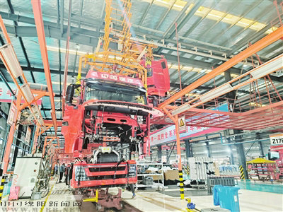 綿陽(yáng)新聞網(wǎng)訊 近日,記者走進(jìn)中國(guó)重汽綿陽(yáng)基地生產(chǎn)車間,入眼的是一派熱火朝天的景象:裝配線上,工人們熟練地安裝駕駛室、裝配輪胎,行吊車來(lái)回穿梭,機(jī)械臂精準(zhǔn)焊接,一臺(tái)臺(tái)重型卡車在流水線上逐漸成型;車間里,機(jī)器聲隆隆,焊花四濺,工人們熟練地?fù)]舞著手中的工具,干勁十足。
