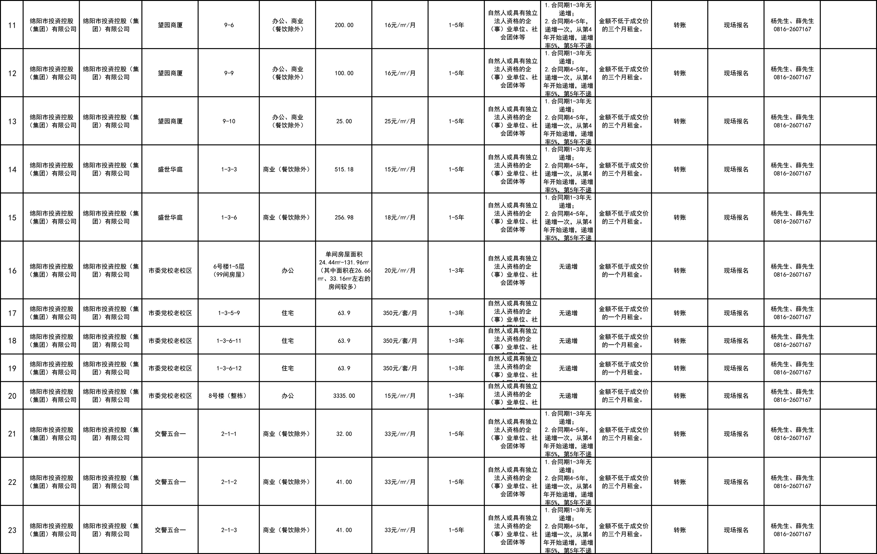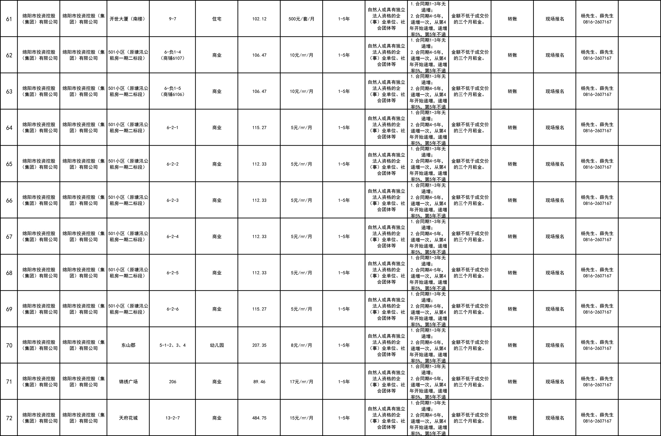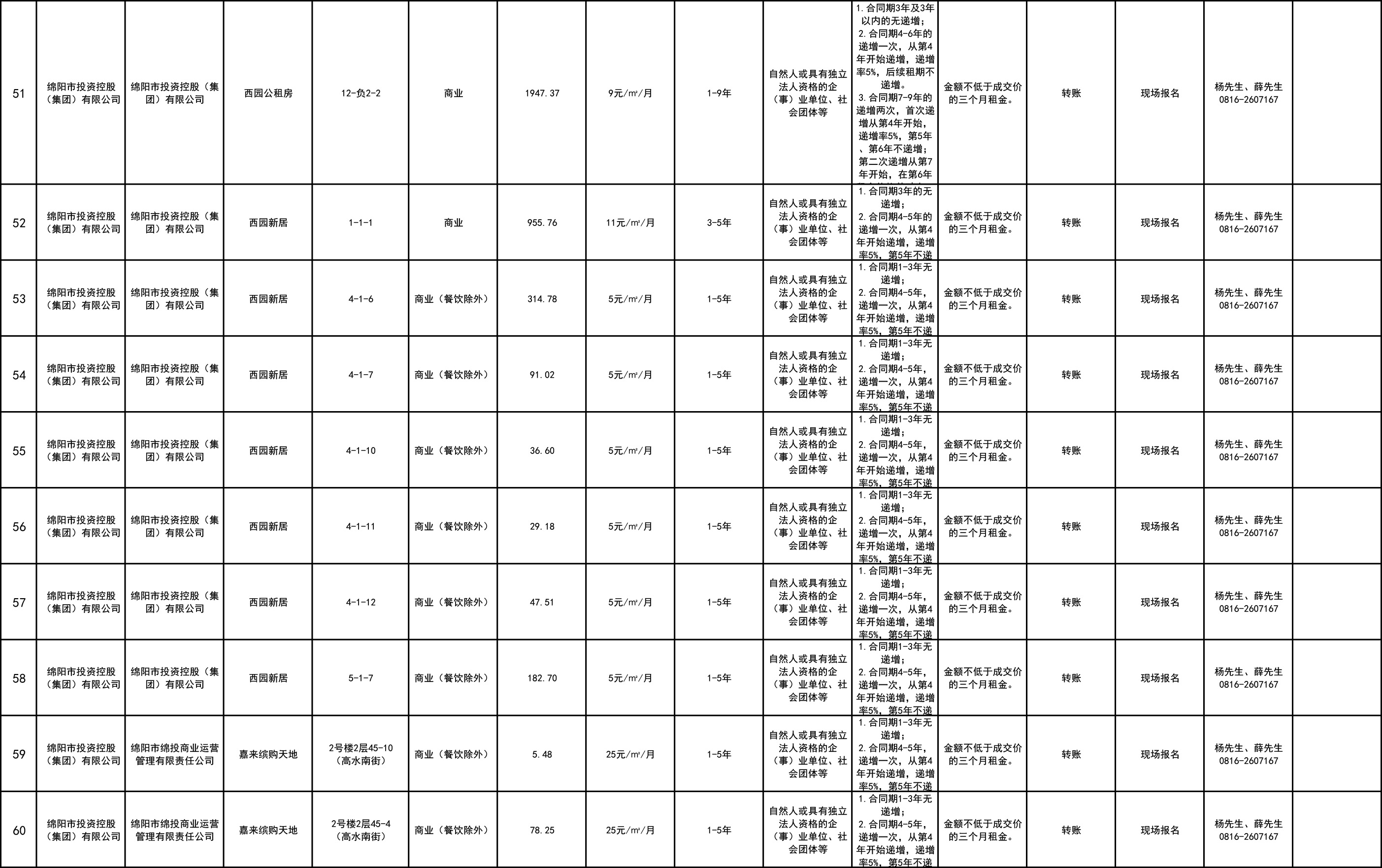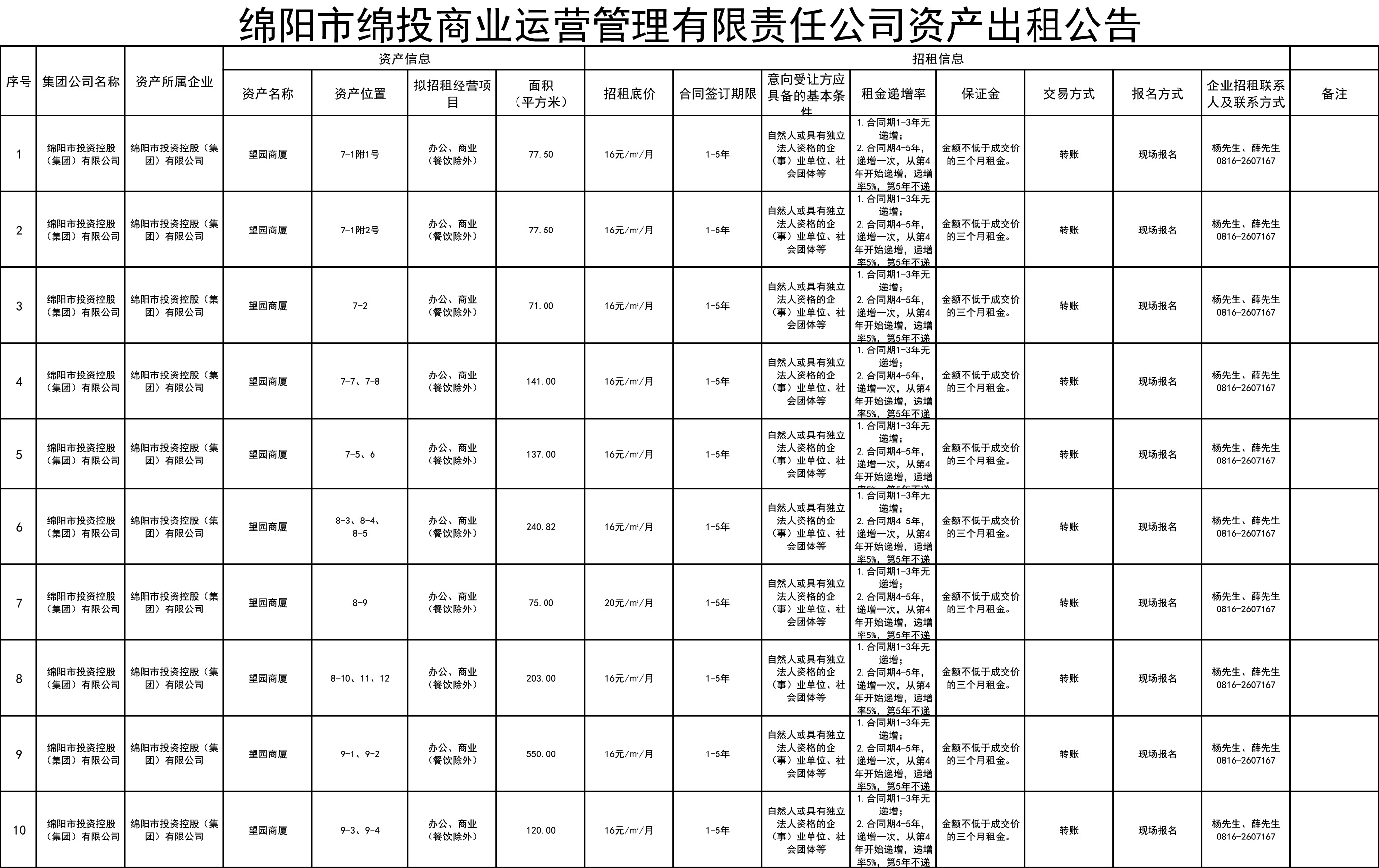 綿陽市綿投商業(yè)運(yùn)營管理有限責(zé)任公司資產(chǎn)出租公告