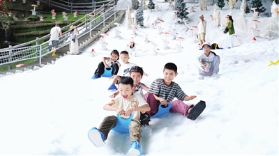 在戲雪場(chǎng),游客玩雪、打雪仗,十分熱鬧。“太神奇了,這么熱的天能玩雪、打雪仗,體驗(yàn)0℃的冰爽反差,小朋友很開(kāi)心,體驗(yàn)獨(dú)特。”成都游客陳先生說(shuō)。