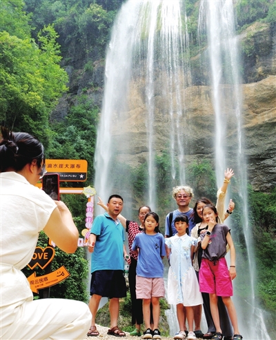 依托涼爽氣候,雙紫村特色民宿也迎來(lái)避暑高峰。游客漫步山間呼吸清新空氣,品嘗農(nóng)家菜,或沿新建步道直達(dá)瀑布打卡,體驗(yàn)“住于景中、游在咫尺”的便利。