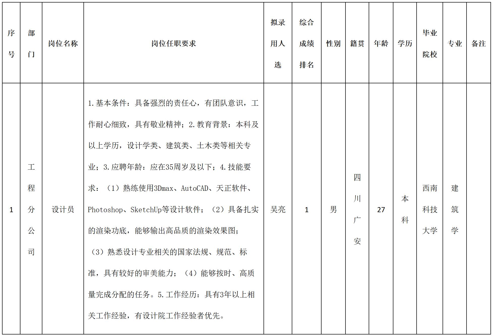 根據四川湖山電器股份有限公司發(fā)布的招聘公告及招聘相關規(guī)定,經筆試、面試、考察、體檢等程序,擬錄用吳亮同志到四川湖山電器股份有限公司工作,現(xiàn)予以公示,具體情況如下: