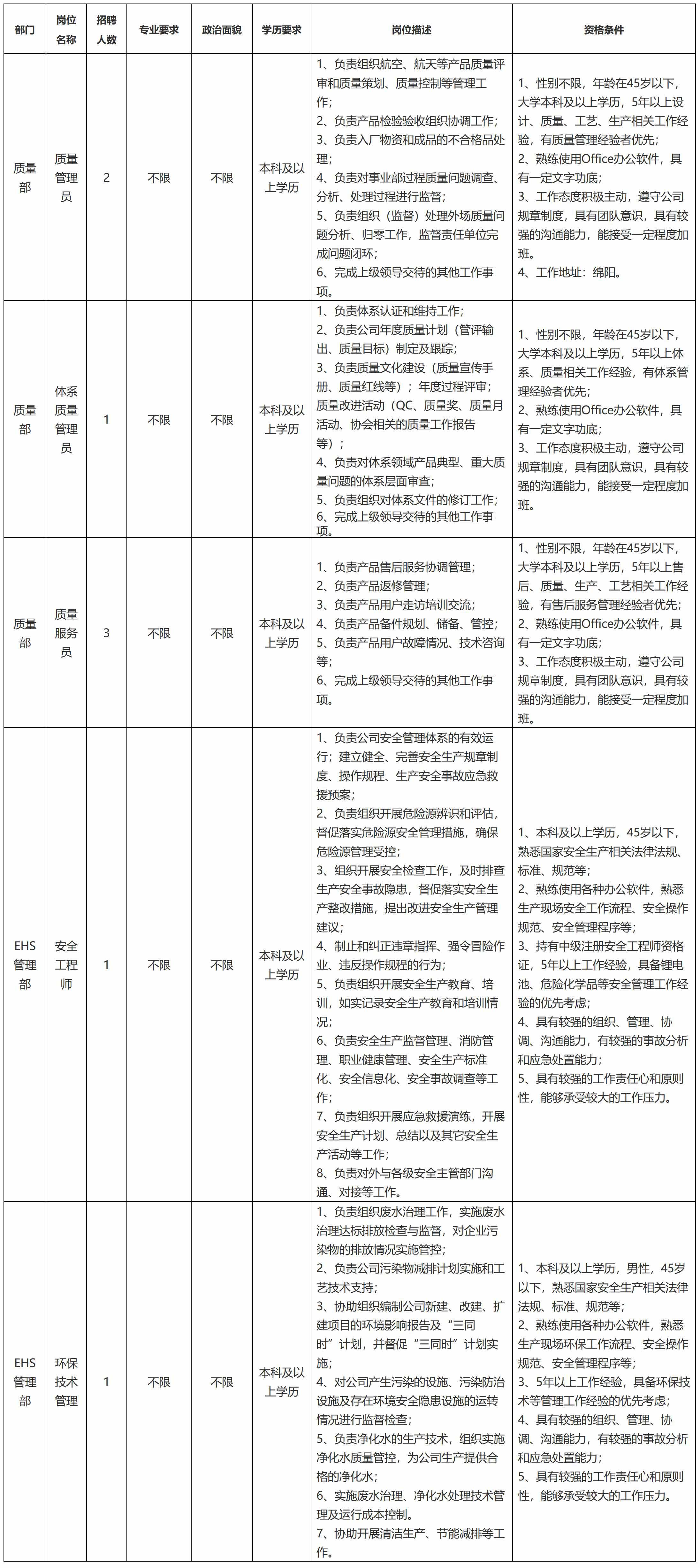 8月7日起招聘信息長期有效,以人員招聘到崗為止