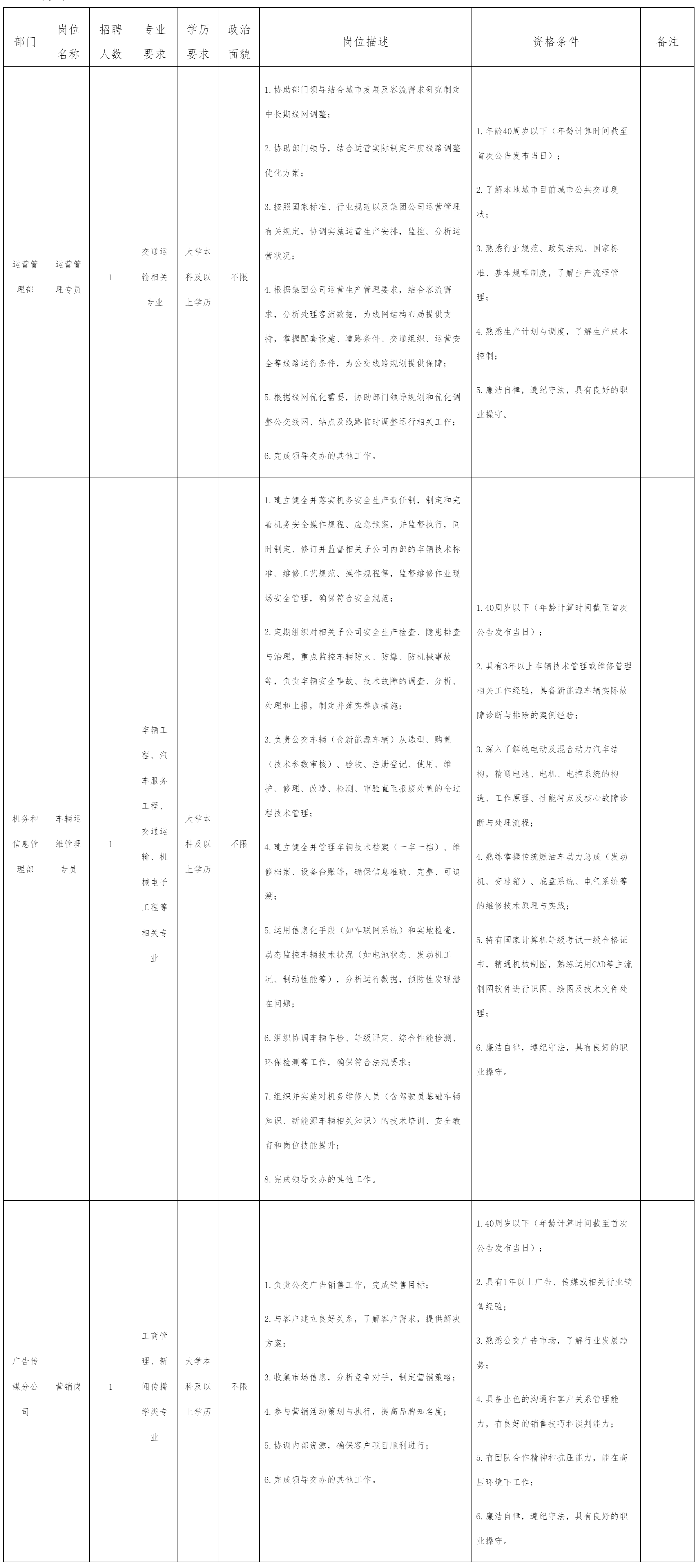綿陽(yáng)市公共交通集團(tuán)有限責(zé)任公司關(guān)于招聘運(yùn)營(yíng)管理專員等崗位的公告