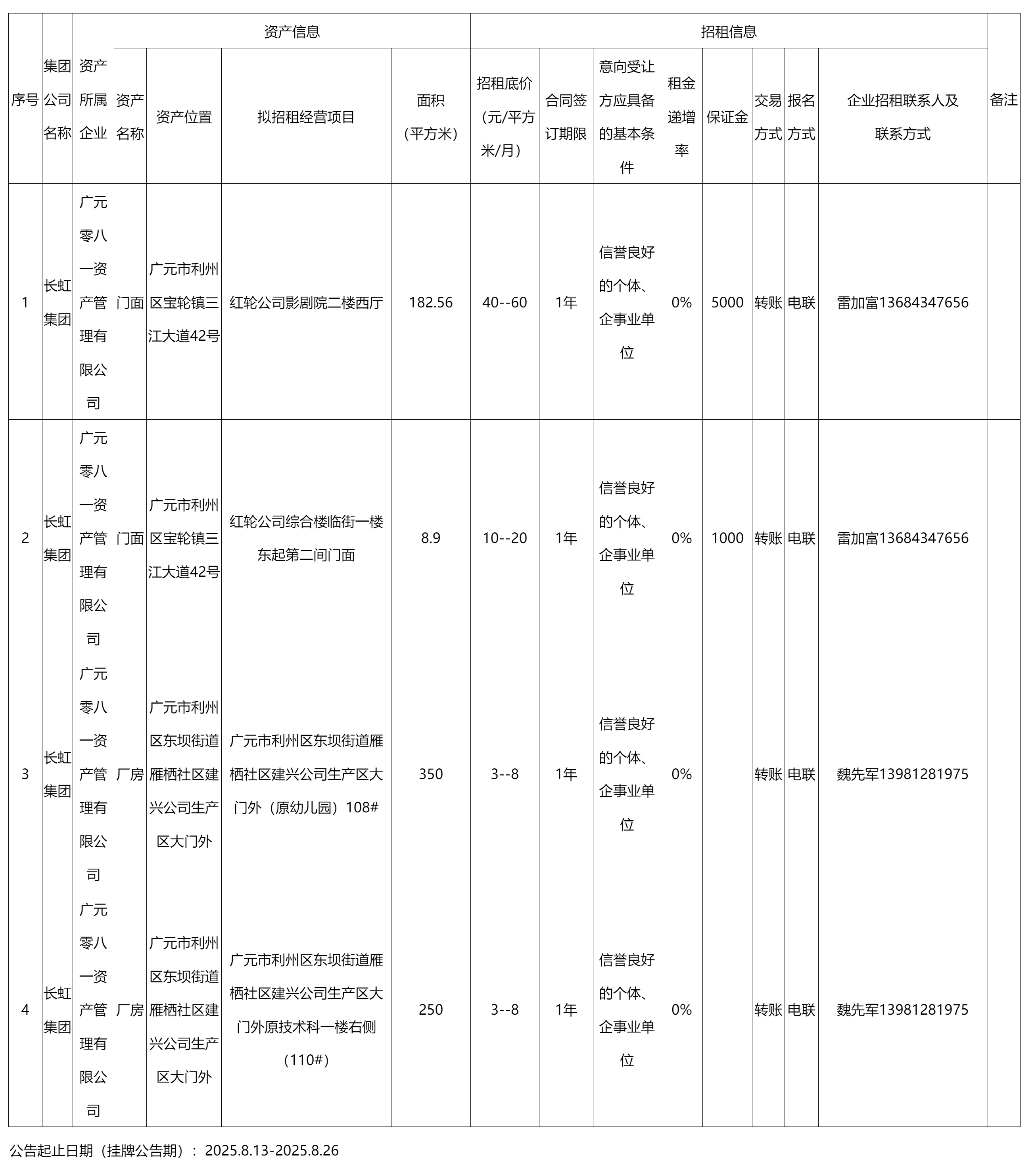 廣元零八一資產(chǎn)管理有限公司資產(chǎn)出租公告