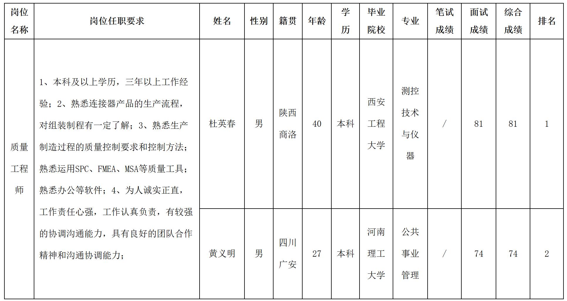 根據(jù)四川華豐科技股份有限公司發(fā)布的招聘公告及招聘相關(guān)規(guī)定,經(jīng)筆試、面試等程序,現(xiàn)將筆試(面試)成績(jī)予以公示。