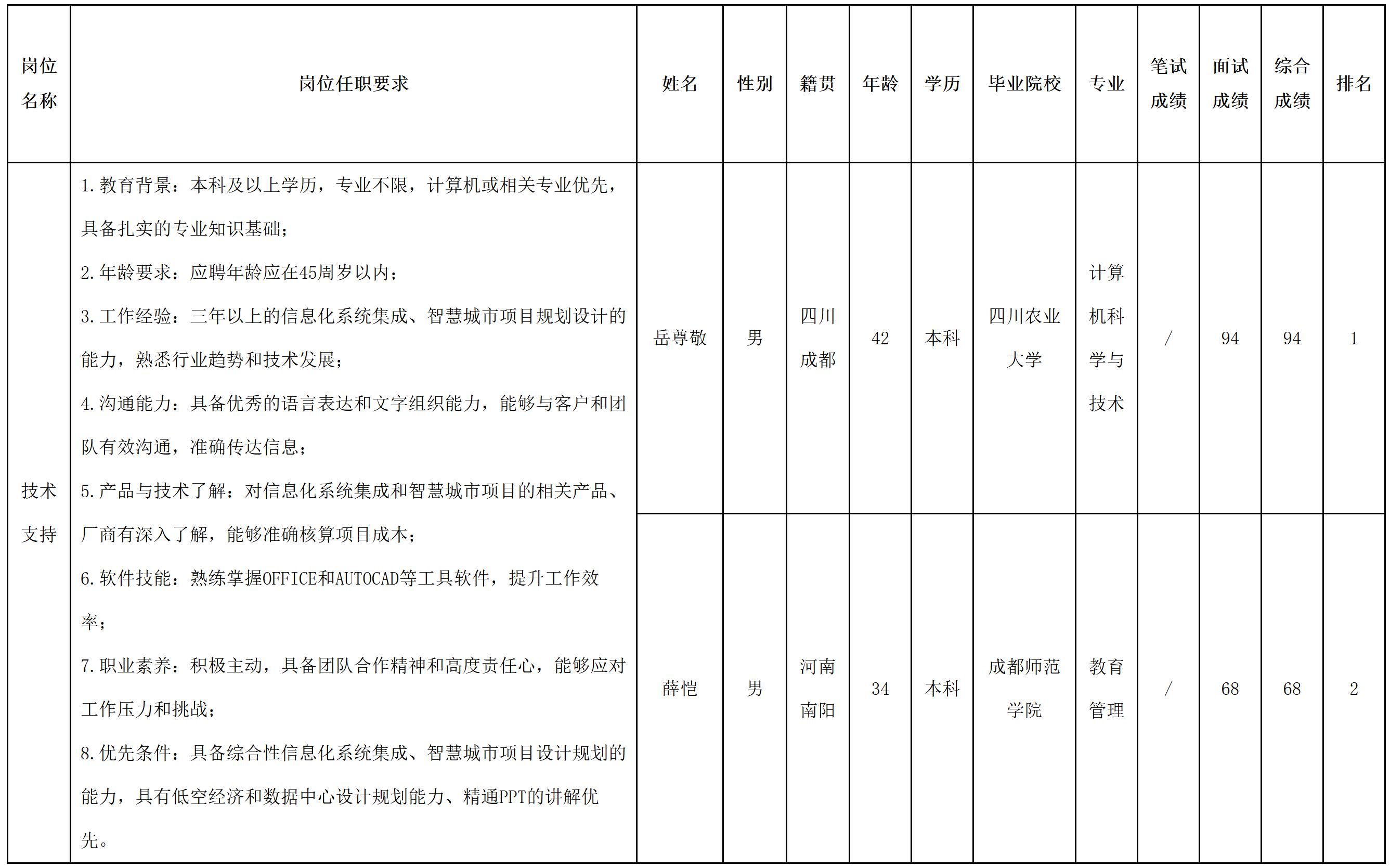 根據(jù)四川虹信軟件股份有限公司發(fā)布的招聘公告及招聘相關(guān)規(guī)定,經(jīng)面試等程序,現(xiàn)將面試成績(jī)予以公示。