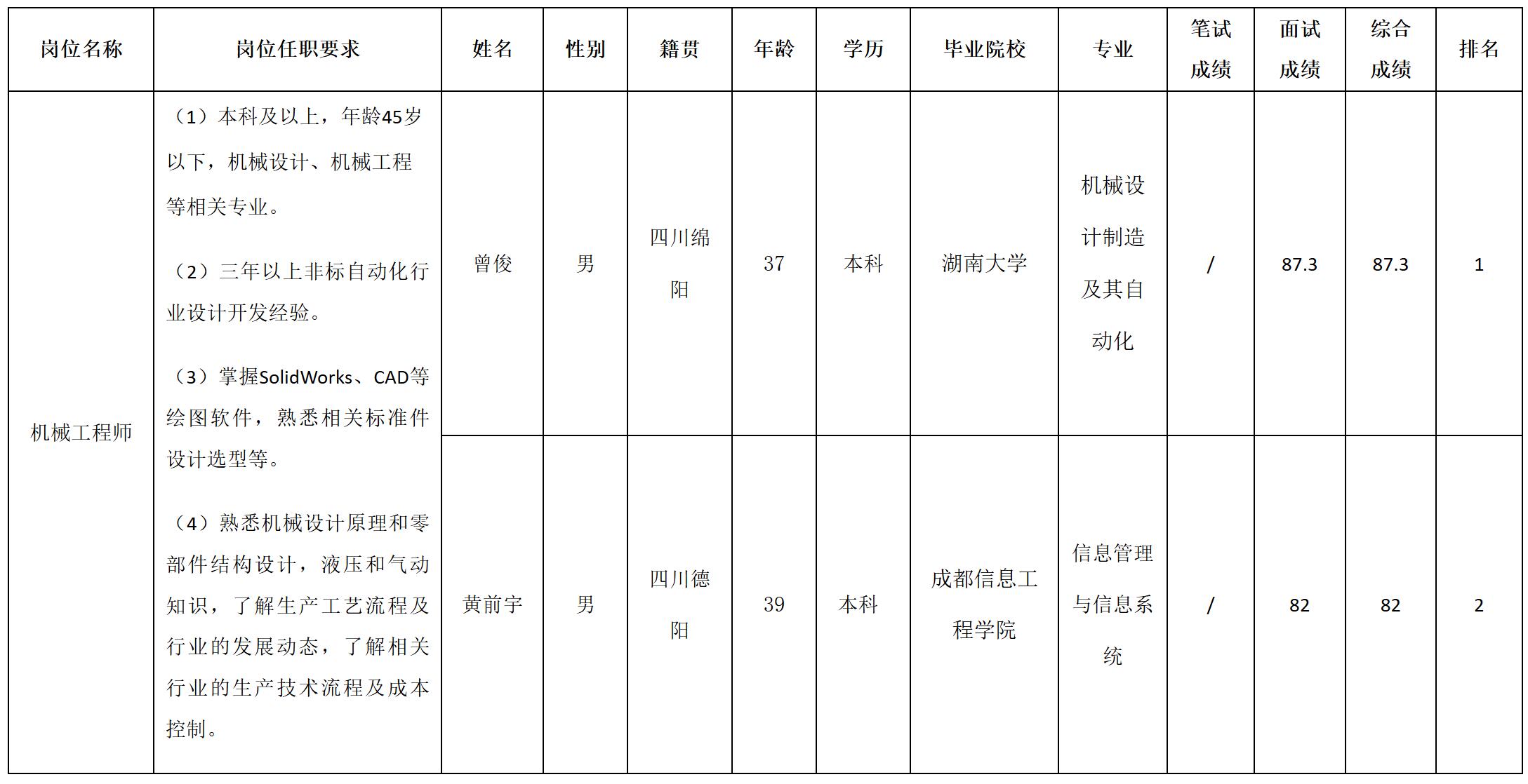 根據(jù)四川長虹智能制造技術有限公司發(fā)布的招聘公告及招聘相關規(guī)定,經(jīng)面試等程序,現(xiàn)將面試成績予以公示。