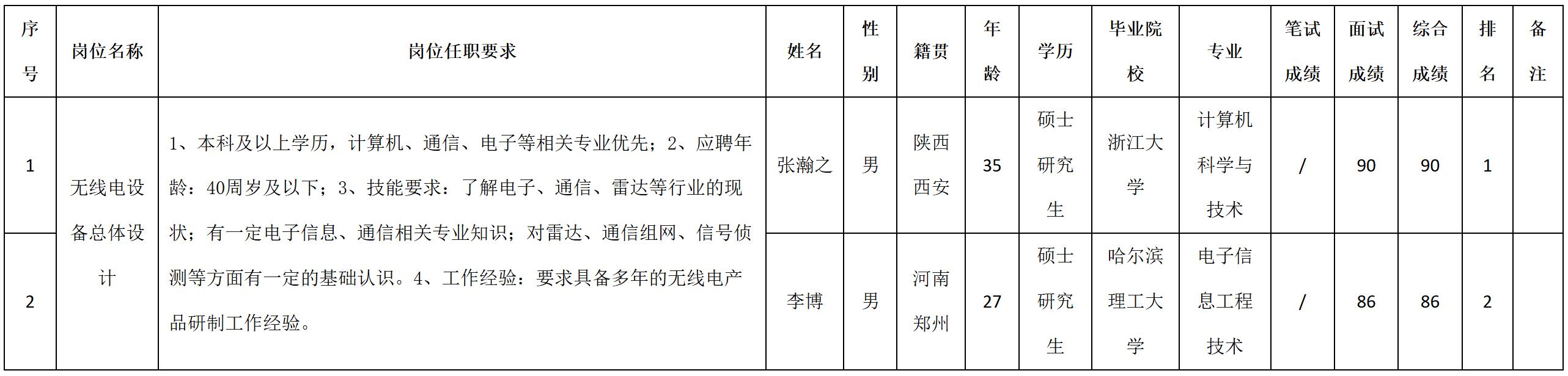 根據四川九洲防控科技有限責任公司發(fā)布的招聘公告及招聘相關規(guī)定,經筆試、面試等程序,現(xiàn)將筆試(面試)成績予以公示。