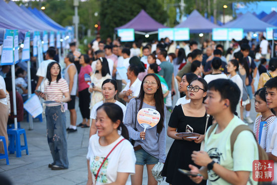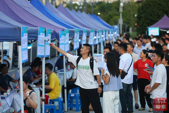 應(yīng)屆高校畢業(yè)生白冠平在傍晚時(shí)分來到招聘會(huì)現(xiàn)場,向有意向的企業(yè)投遞自己的簡歷。“我通過網(wǎng)絡(luò)了解到這次招聘會(huì),大學(xué)專業(yè)學(xué)的是網(wǎng)絡(luò)營銷類,今天在現(xiàn)場也想找到類似崗位的工作。”白冠平表示,希望能有一個(gè)比較好的求職結(jié)果,能夠在綿陽這座城市深耕發(fā)展。