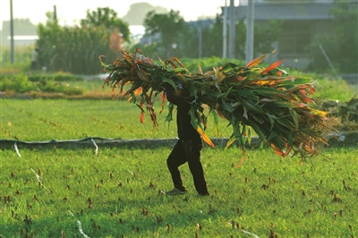 八月的鄉(xiāng)村,處處呈現(xiàn)出一派淳樸自然的田園景色。俯瞰阡陌縱橫的農(nóng)田,猶如大自然鋪陳的斑斕調(diào)色板,與農(nóng)房、山巒相映成趣,宛如一幅徐徐展開的水墨畫卷。在涪江之畔的三臺縣萬家坎村、永明村,綠色的稻浪開始吐穗,金黃的玉米曬滿農(nóng)家小院。田間,農(nóng)戶們趁著清晨涼爽,忙著將玉米稈碼上車,運(yùn)往村頭秸稈回收企業(yè);濃綠的麥冬地里,種植戶將碩大的遮陽傘斜放在身旁,坐在陰涼處俯身除草……