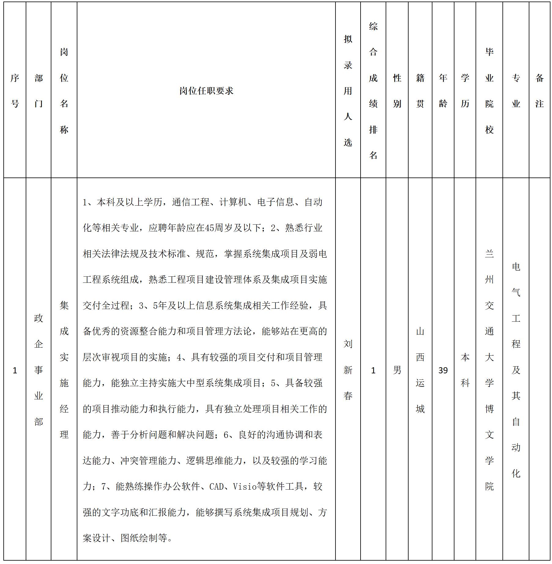 根據(jù)四川九洲投資控股集團有限公司軟件與數(shù)據(jù)智能軍團發(fā)布的招聘公告及招聘相關(guān)規(guī)定,經(jīng)筆試、面試、考察、體檢等程序,擬錄用劉新春同志到四川九洲投資控股集團有限公司軟件與數(shù)據(jù)智能軍團工作,現(xiàn)予以公示,具體情況如下: