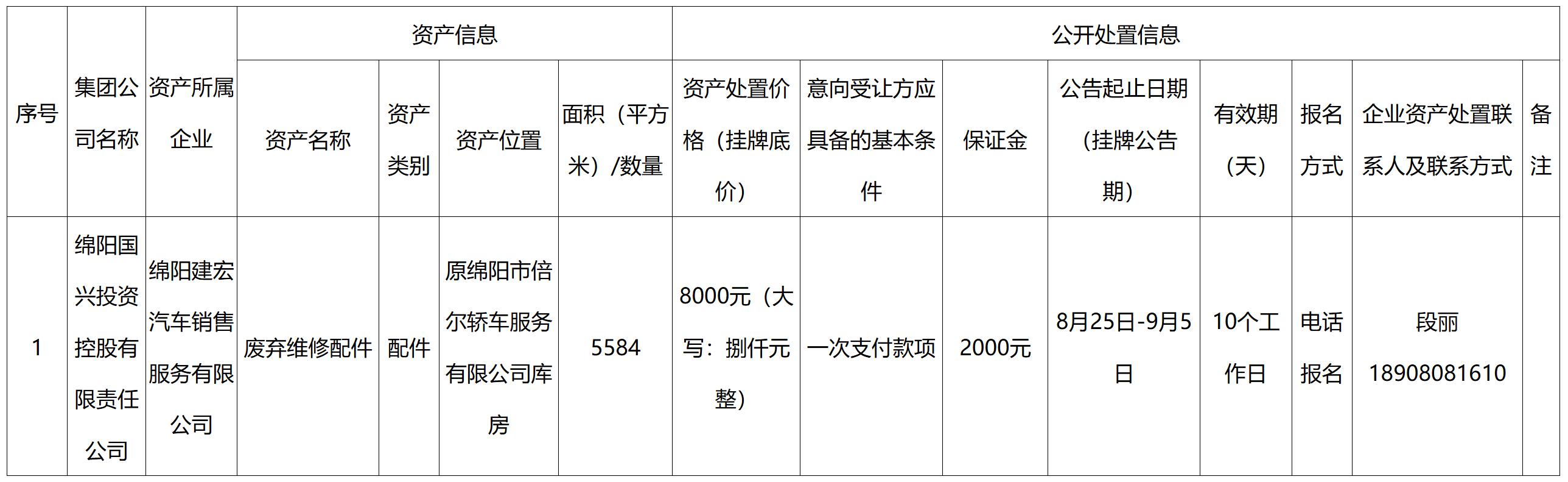 綿陽國興投資控股有限責任公司資產(chǎn)處置公告