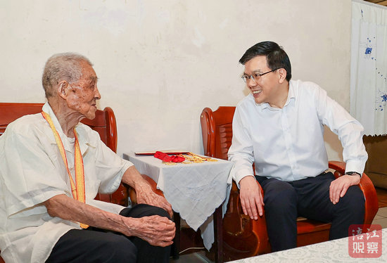 102歲的老戰(zhàn)士張登仁曾參加過抗日戰(zhàn)爭。左永祥來到張登仁家中,為他頒發(fā)“中國人民抗日戰(zhàn)爭勝利80周年”紀念章,并與老人促膝交談,關(guān)切詢問其身體狀況和生活情況,感謝他為民族獨立、人民解放事業(yè)作出的積極貢獻,希望他保重身體,祝福他健康長壽。左永祥說,習近平總書記對老戰(zhàn)士、老同志十分牽掛,黨中央、國務(wù)院、中央軍委就頒發(fā)“中國人民抗日戰(zhàn)爭勝利80周年”紀念章作出部署,充分體現(xiàn)了以習近平同志為核心的黨中央對抗戰(zhàn)老戰(zhàn)士、老同志的高度重視和深切關(guān)懷。我們要大力弘揚偉大抗戰(zhàn)精神,走好我們這一代人的長征路,勇于戰(zhàn)勝前進道路上的各種風險挑戰(zhàn),弘揚新風正氣,奮力拼搏進取,廣泛凝聚起為綿陽高質(zhì)量發(fā)展團結(jié)奮斗的強大力量。要牢記革命先輩的豐功偉績,大力宣傳他們的英雄事跡,傳承發(fā)揚他們的斗爭精神,教育引導(dǎo)好下一代,讓紅色基因、革命薪火代代傳承。要關(guān)心照顧好老戰(zhàn)士老同志,用心用情用力做好服務(wù)保障工作,讓他們充分感受到黨的溫暖、更好享受到改革發(fā)展成果,安享幸福晚年。