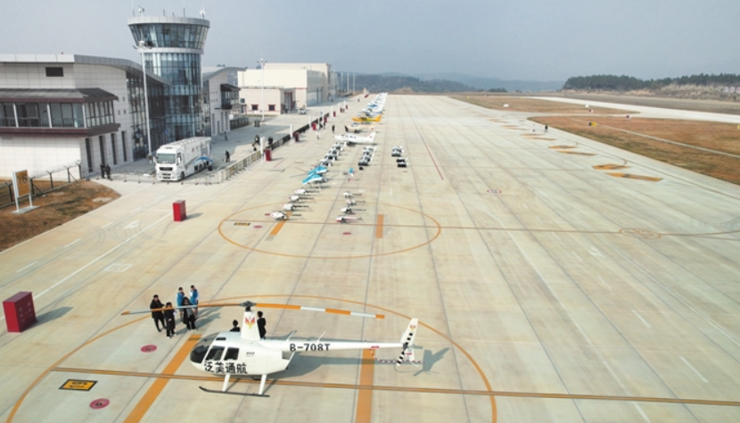永昌機場內(nèi),各式飛機和無人機整齊停放。