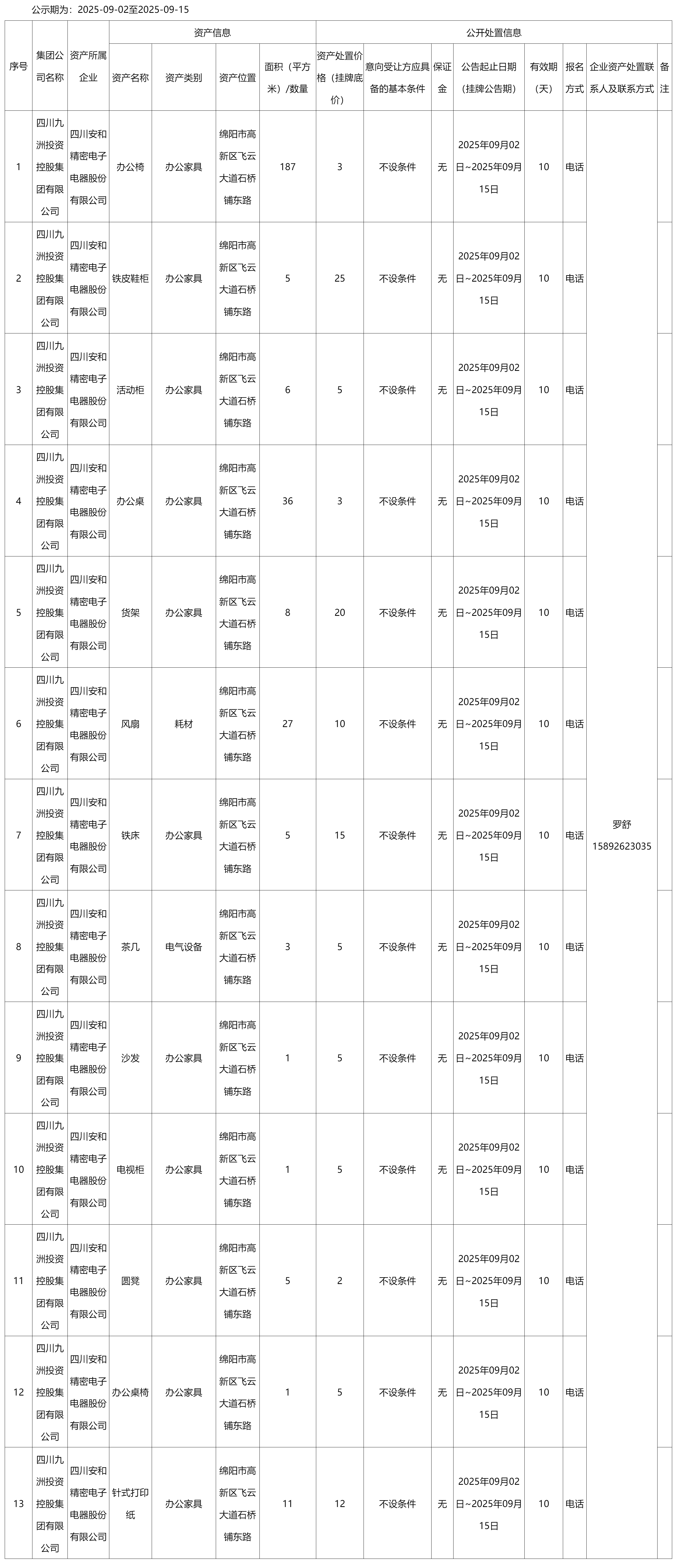 四川安和精密電子電器股份有限公司廢舊辦公用品資產處置公告