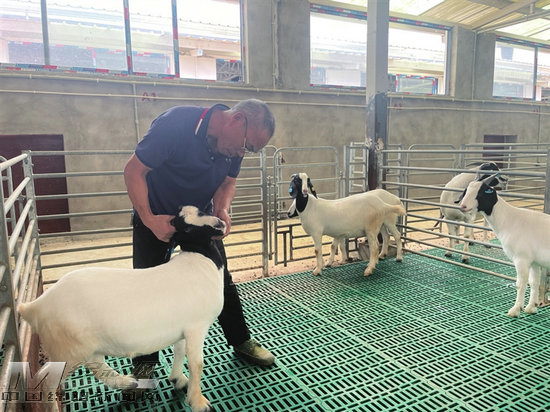 養(yǎng)殖人員正在查看肉羊生長(zhǎng)情況