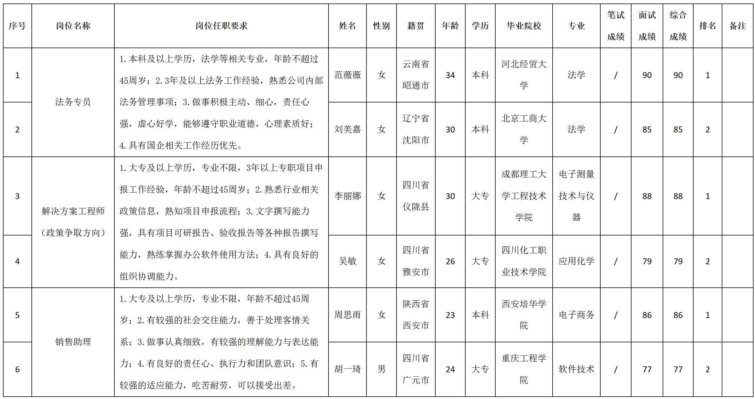 根據(jù)四川科瑞軟件有限責任公司發(fā)布的招聘公告及招聘相關(guān)規(guī)定,經(jīng)筆試、面試等程序,現(xiàn)將筆試(面試)成績予以公示。