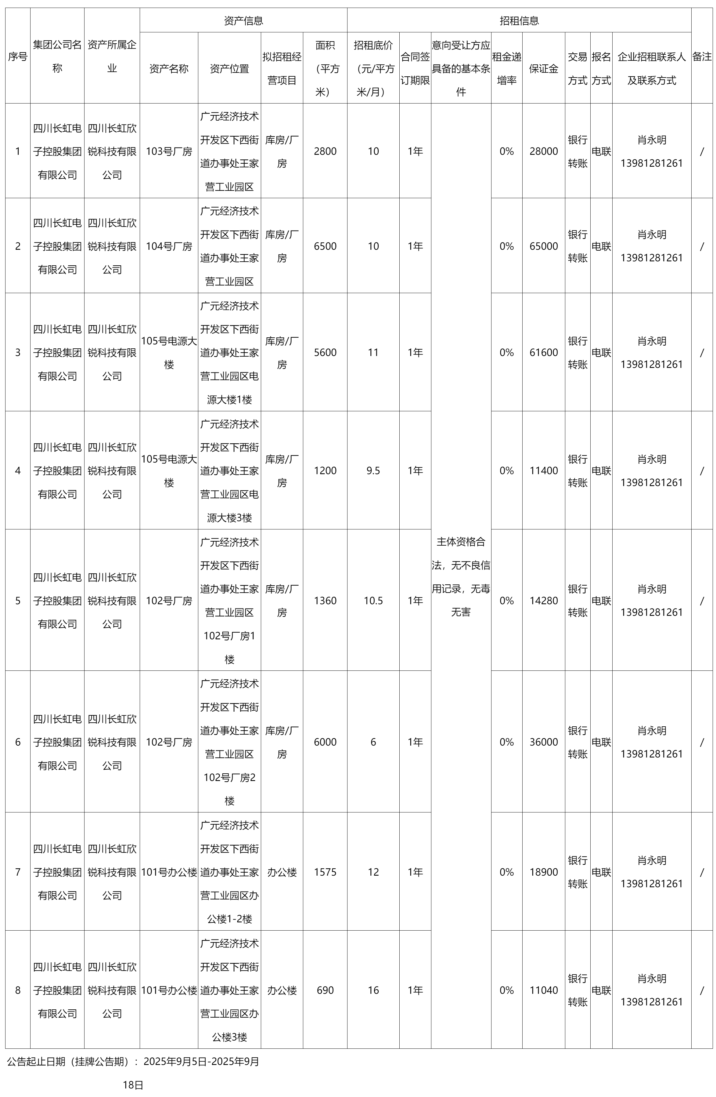 四川長(zhǎng)虹欣銳科技有限公司資產(chǎn)出租公告