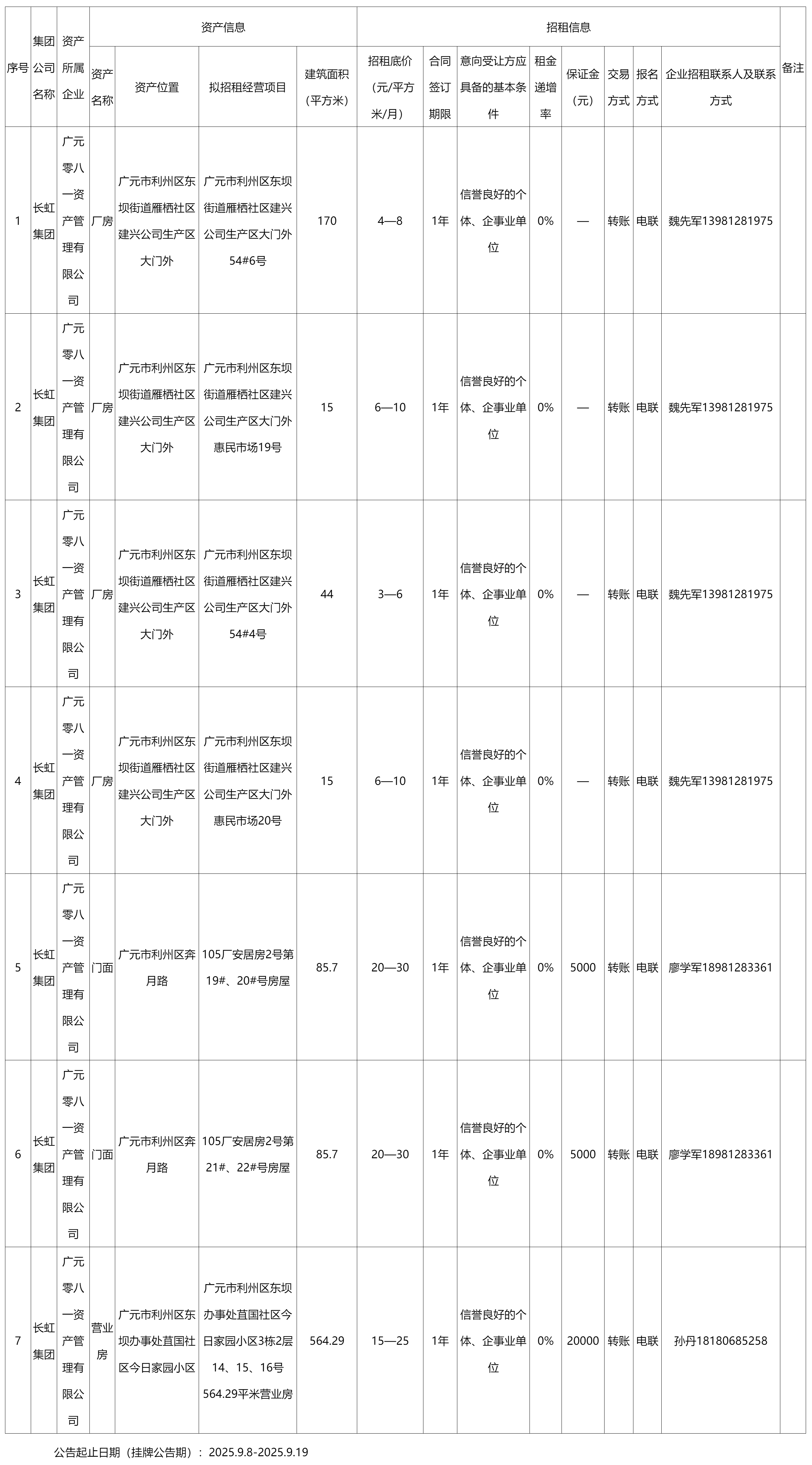 廣元零八一資產管理有限公司資產出租公告