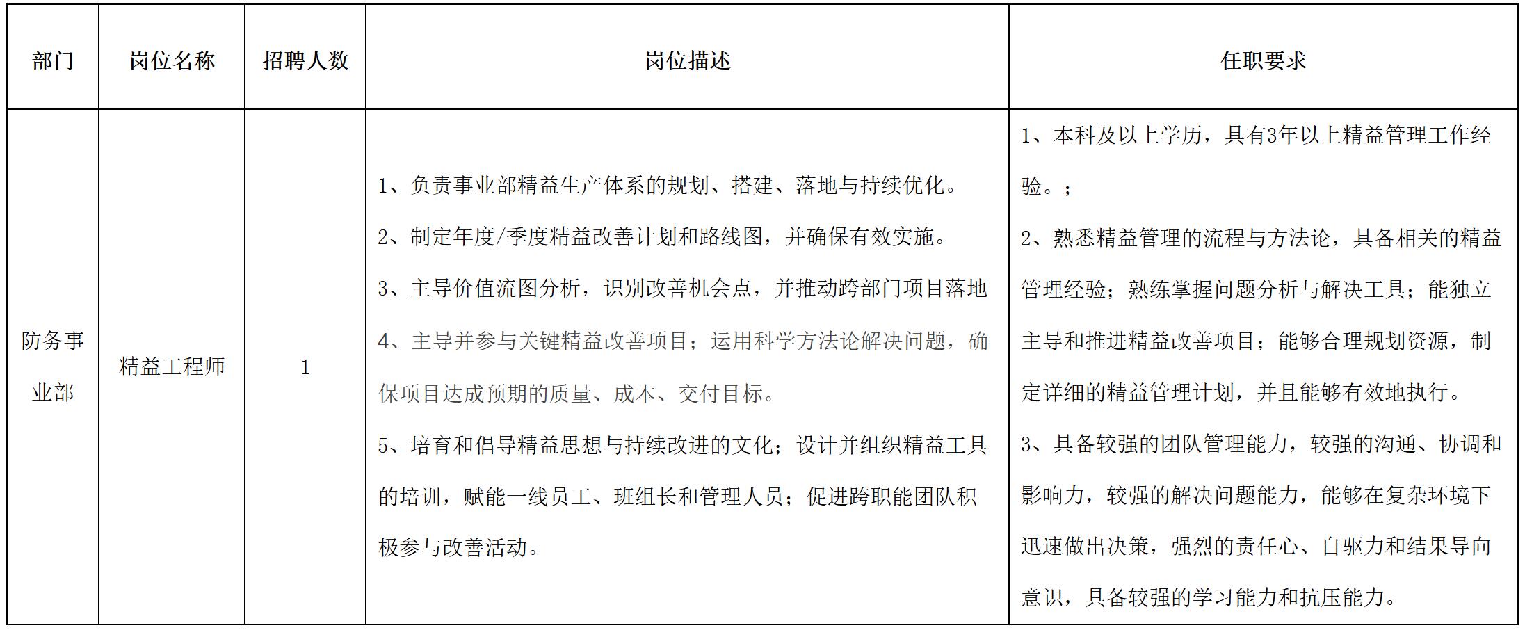 現(xiàn)因公司經(jīng)營發(fā)展需要,現(xiàn)面向長虹控股集團(tuán)內(nèi)、外部誠聘精益工程師崗位人員,具體崗位招聘信息公告如下: