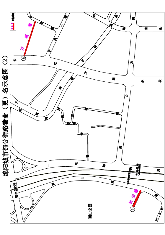4.萬福巷:萬寶巷至長虹大道北段,東西走向,長約200米,寬約6米。因緊鄰萬寶市場,取“萬福”作道路專名,寓意群眾生活幸福美滿。(見示意圖2)