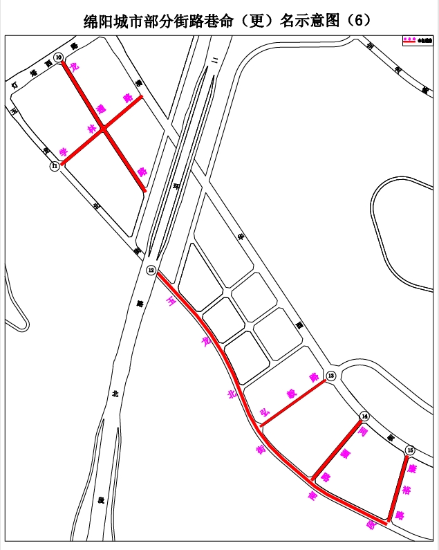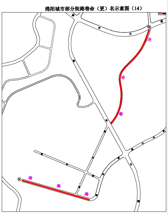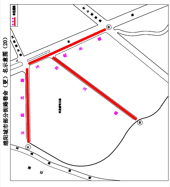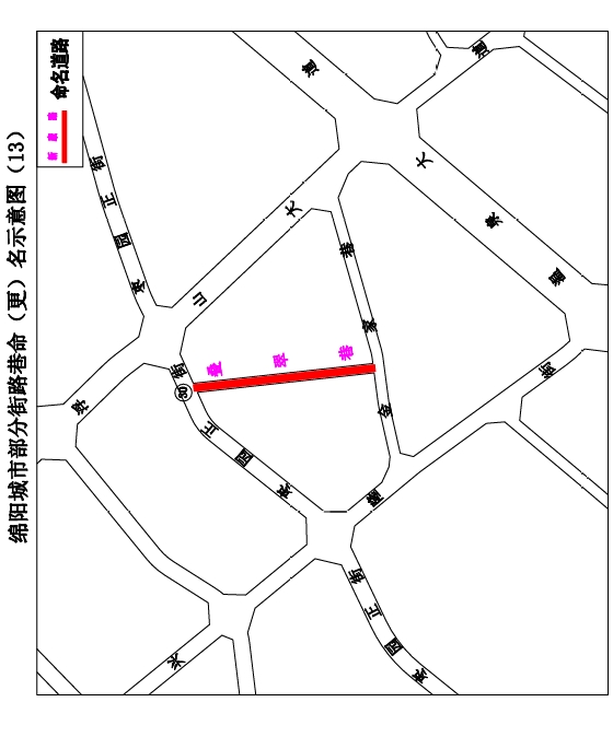 14.同源路:清華西街至玉龍北街南段,東北向西南走向,長約280米,寬約20米。道路沿途有涪城區(qū)中醫(yī)醫(yī)院,中醫(yī)講究“藥食同源”,擬命名“同源路”。(見示意圖6)